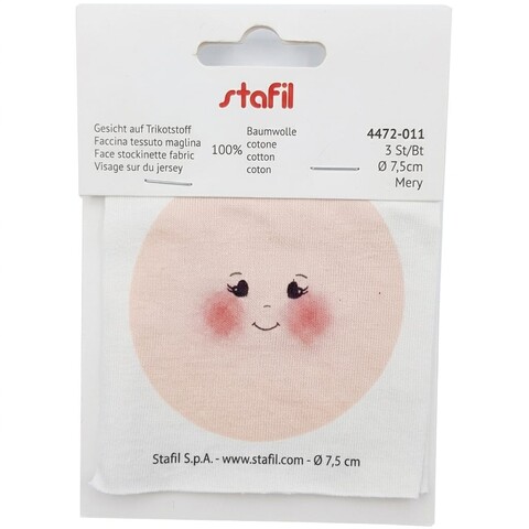 Le faccine sono realizzate in morbido tessuto di maglina (jersey), un materiale leggermente elastico e molto piacevole al tatto, ideale per la creazione di pupazzi.