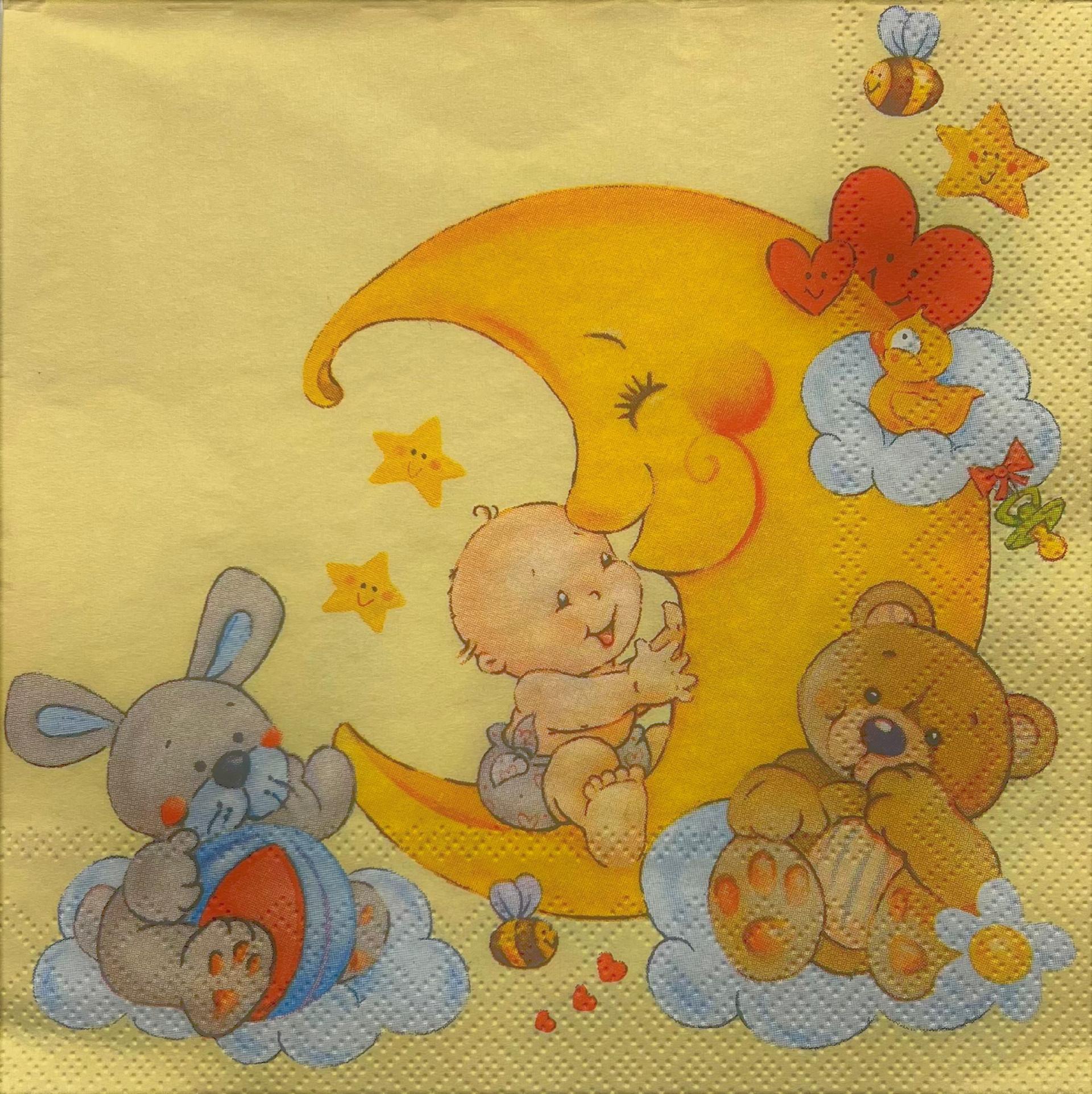 tovaglioli per decoupage luna con bambino arti e grafica busta da 2 pezzi 30x30