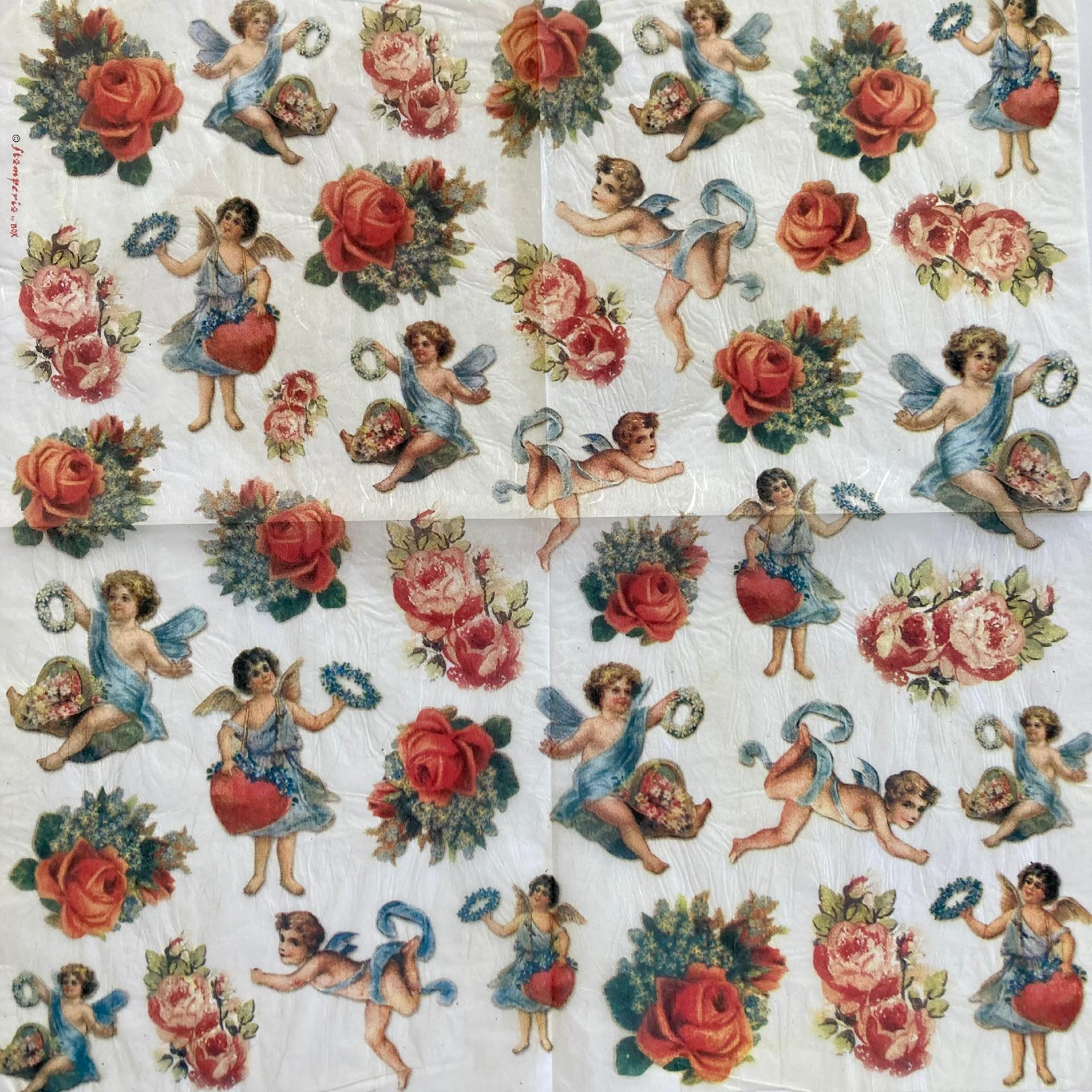 Trasforma i tuoi oggetti e mobili con un tocco di eleganza senza tempo grazie al Tovagliolo in carta riso - Angeli e Rose vittoriane di Stamperia. Questo splendido foglio è il materiale decoupage ideale per chi ama gli hobby creativi e desidera ottenere risultati professionali con facilità. La carta di riso per decoupage, a differenza dei normali tovaglioli, offre una resistenza superiore e una semi-trasparenza che permette di creare sfumature delicate, integrando perfettamente il disegno sulla superficie scelta. Il design, con i suoi romantici angeli e le raffinate rose in stile vittoriano, è perfetto per decorare scatole, vassoi, mobili e molto altro, donando un'aria sognante e ricercata a ogni tua creazione di fai da te decoupage.