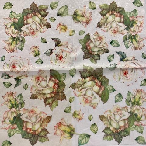 - Design Esclusivo Stamperia: Una delicata composizione di rose bianche con eleganti sfumature rosa, perfetta per uno stile shabby chic, romantico o vintage.