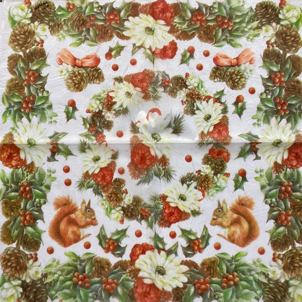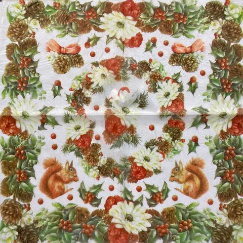Dai il benvenuto al calore e alla tenerezza delle festività con il nostro tovagliolo in carta di riso per decoupage di Stamperia. Questo non è un semplice tovagliolo, ma una tela d'artista che raffigura un adorabile scoiattolo immerso in una festosa ghirlanda natalizia. Perfetto per chi desidera aggiungere un tocco unico e personale alle proprie creazioni, questo prodotto è l'alleato ideale per i tuoi progetti di decoupage natalizio. La qualità superiore della carta di riso Stamperia garantisce un'applicazione impeccabile su qualsiasi superficie, rendendo ogni tuo lavoro un'opera d'arte. Scegli il miglior materiale per decoupage e lascia che la tua creatività brilli durante il periodo più magico dell'anno.