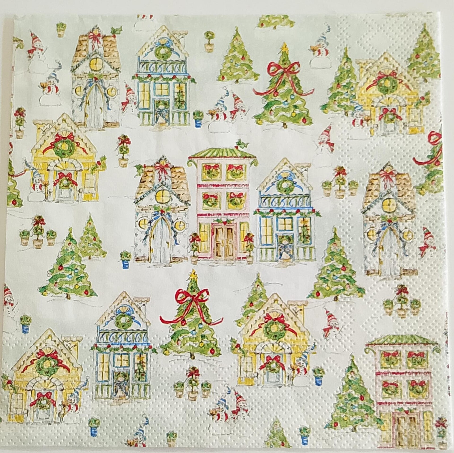 Immergiti nella magica atmosfera delle feste con i nostri tovaglioli per decoupage con alberi e casette natalizie. Questi tovaglioli sono l'elemento essenziale per dare vita alle tue decorazioni natalizie fai da te, trasformando oggetti comuni in capolavori unici e personalizzati. Il design delicato e festoso, con alberi innevati e casette accoglienti, è perfetto per chi ama il decoupage natalizio e desidera aggiungere un tocco di calore e creatività alla propria casa. Realizzati con carta di alta qualità, garantiscono un'applicazione facile e un risultato finale impeccabile su qualsiasi superficie.