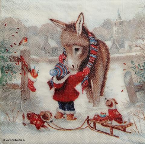 tovaglioli per decoupage asinello con sciarpa arti e grafica busta da 2 pezzi 25x25 cm