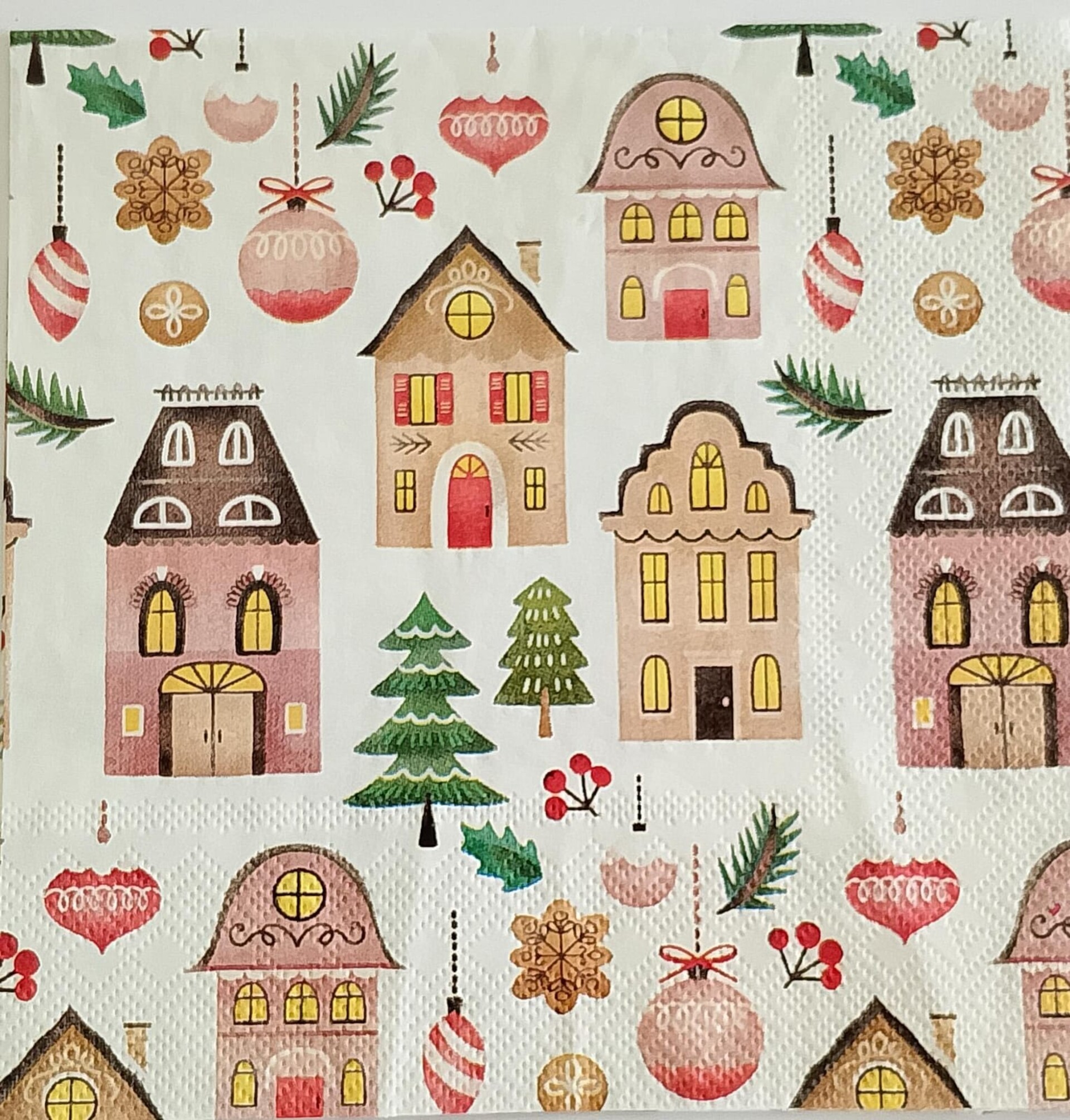 Trasforma le tue creazioni in capolavori unici con i nostri tovaglioli per decoupage a tema case natalizie. Questi tovaglioli sono l'elemento essenziale per chiunque desideri realizzare splendide decorazioni natalizie fai da te, aggiungendo un tocco di magia e calore a qualsiasi oggetto. La stampa di alta qualità raffigura un incantevole villaggio innevato, perfetto per dare vita ai tuoi lavoretti di Natale. Che tu sia un'esperta di decoupage o alle prime armi, questa carta per decoupage è incredibilmente facile da usare e garantisce un risultato professionale e di grande effetto su legno, vetro, ceramica e molto altro.