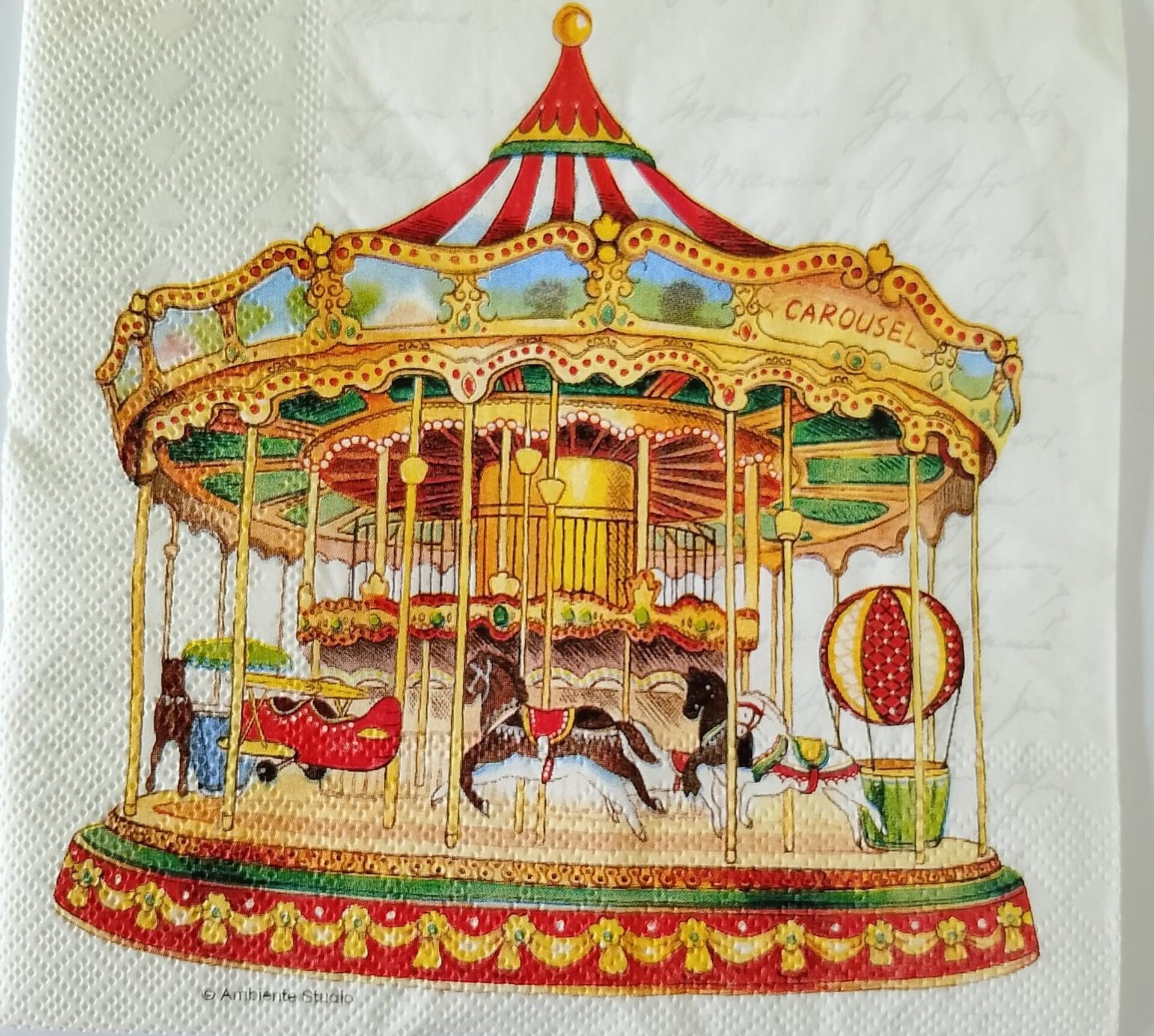 Sei pronto a trasformare un semplice oggetto nella più magica decorazione natalizia che tu abbia mai creato? Con questi tovaglioli per decoupage a tema giostra, puoi catturare l'essenza nostalgica del Natale e infonderla nelle tue creazioni. Immagina di dare nuova vita a una scatola di legno o a un piatto di vetro, trasformandoli in un capolavoro unico grazie a questo splendido materiale per decoupage. La qualità superiore della carta e la stampa dettagliata dei cavalli della giostra rendono ogni progetto un'opera d'arte, perfetta per le tue decorazioni natalizie fai da te o per un regalo fatto con il cuore.