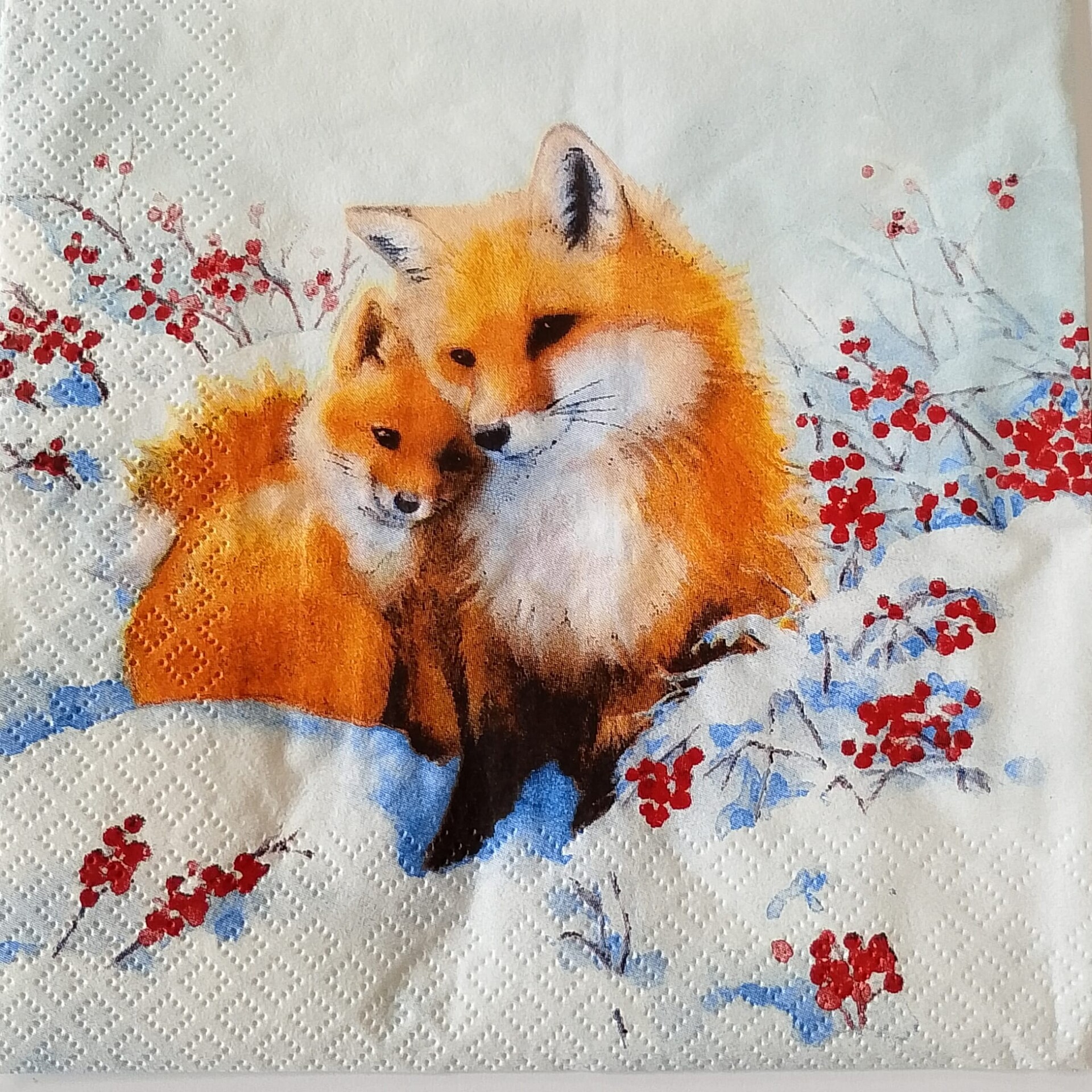 Dai vita alla magia dell'inverno con i nostri esclusivi tovaglioli per decoupage con un'adorabile scena di volpi sulla neve. Perfetti per i tuoi lavoretti natalizi, questi tovaglioli sono il materiale per decoupage ideale per personalizzare oggetti e creare decorazioni uniche. La qualità della stampa e la resistenza della carta rendono ogni creazione un piccolo capolavoro. Che tu voglia decorare legno, vetro o qualsiasi altra superficie, questa carta per decoupage a tema natalizio trasformerà le tue idee in realtà, aggiungendo un tocco di calore e natura ai tuoi progetti di Natale.