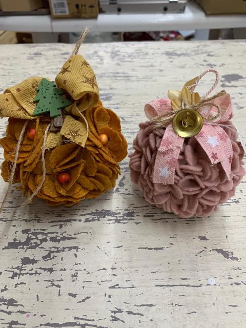 Realizzati a mano con palle in polistirolo, ricoperte di fiocchi in feltro di lana a forma di petali di fiori.