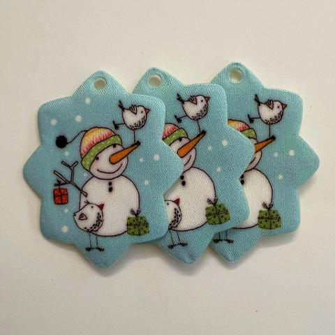 Chiudipacco fondo avorio decoro di pupazzo neve e foro centrale da inserire nel nastrino.